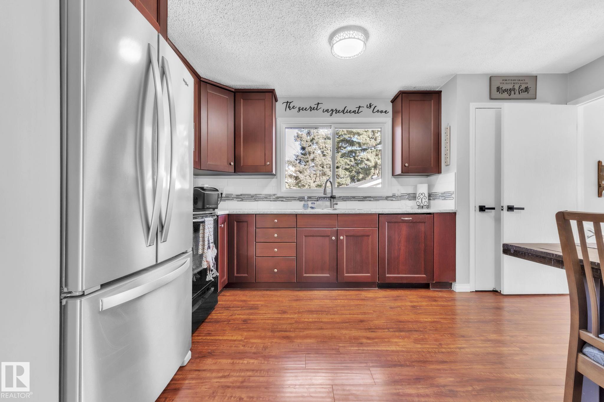 Modern meets Retro Vibes! You’ll love the updates & feel the pride of ownership! This home offers comfort, style & peace of mind, perfect for families or anyone looking for a move-in-ready gem. Step inside the inviting living space filled w/natural light & a freshly painted main floor features a large spacious eat-in kitchen area with coffee bar hutch, 3 bedrooms, posh updated baths, & a dreamy primary w/ private 2-pce ensuite. The vintage styled basement has a huge rec rm to enjoy & a flex space that can e...