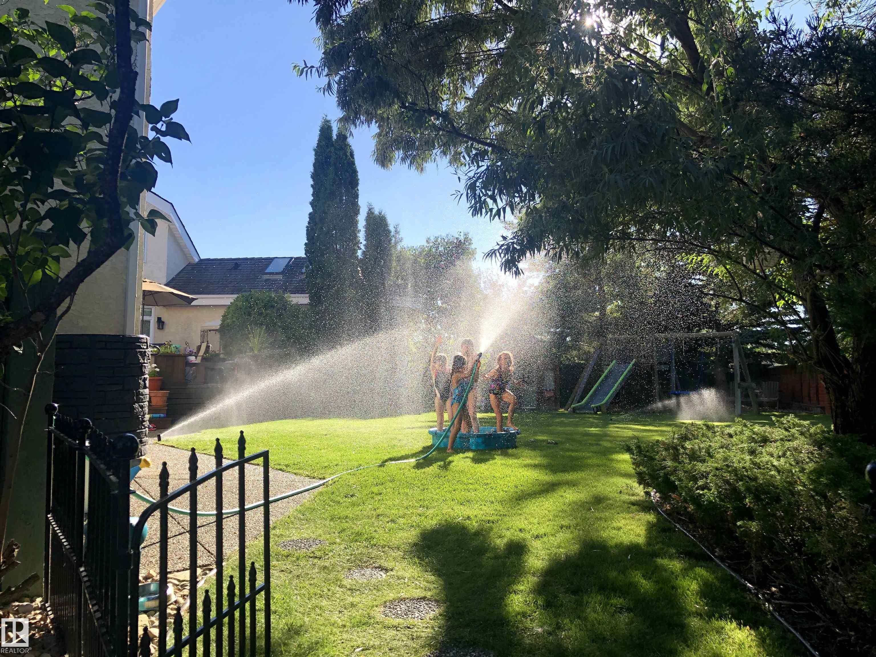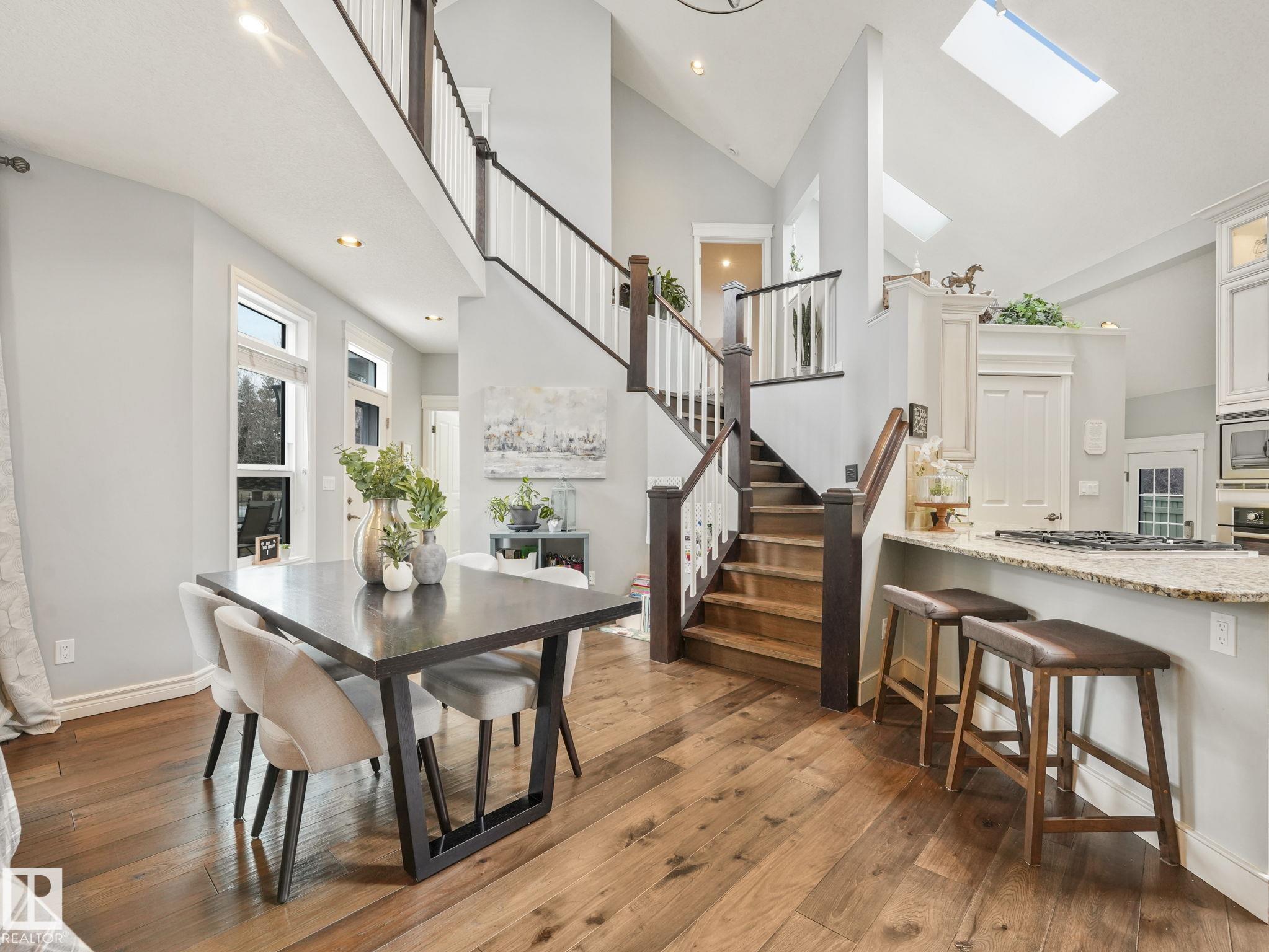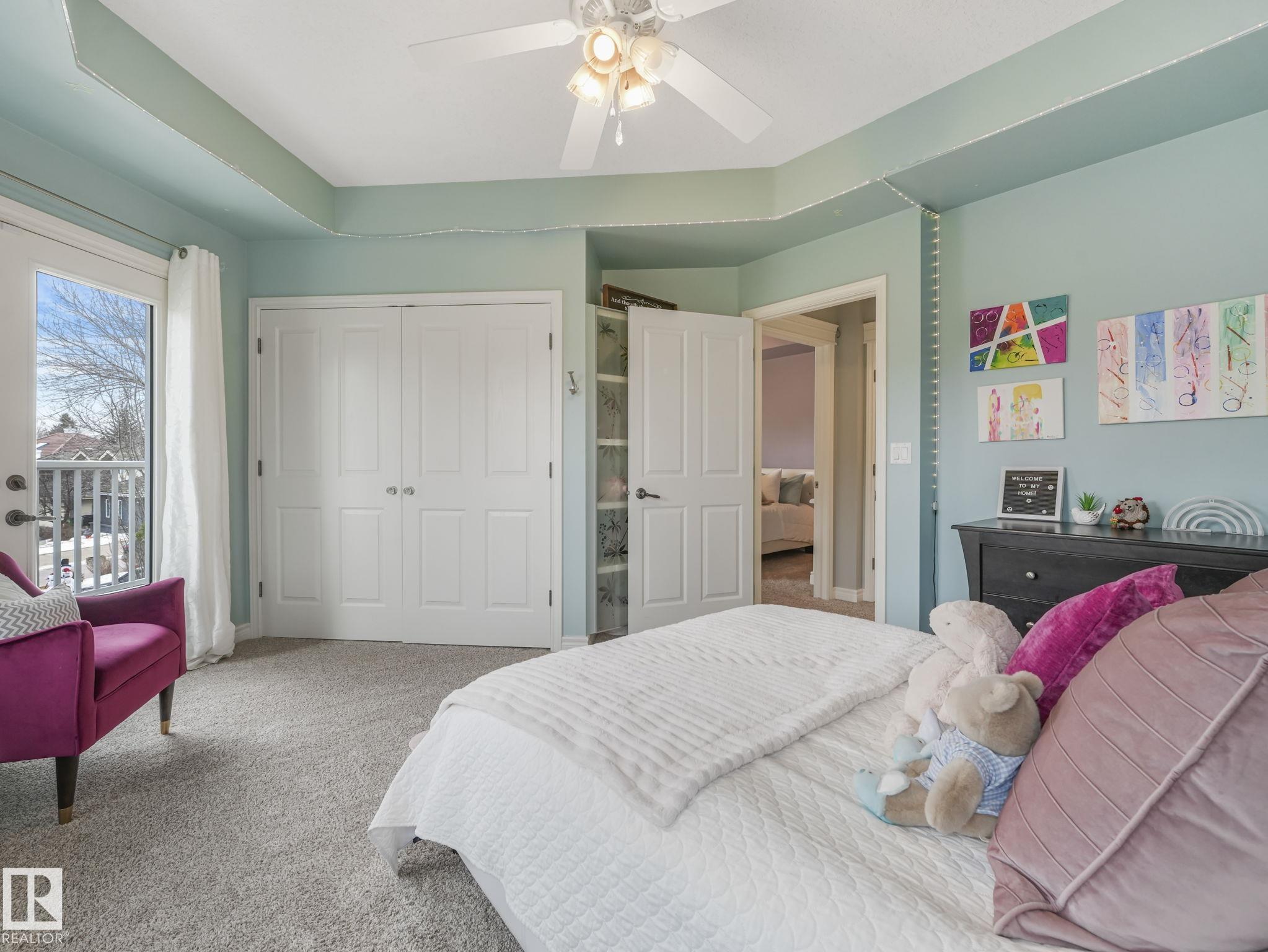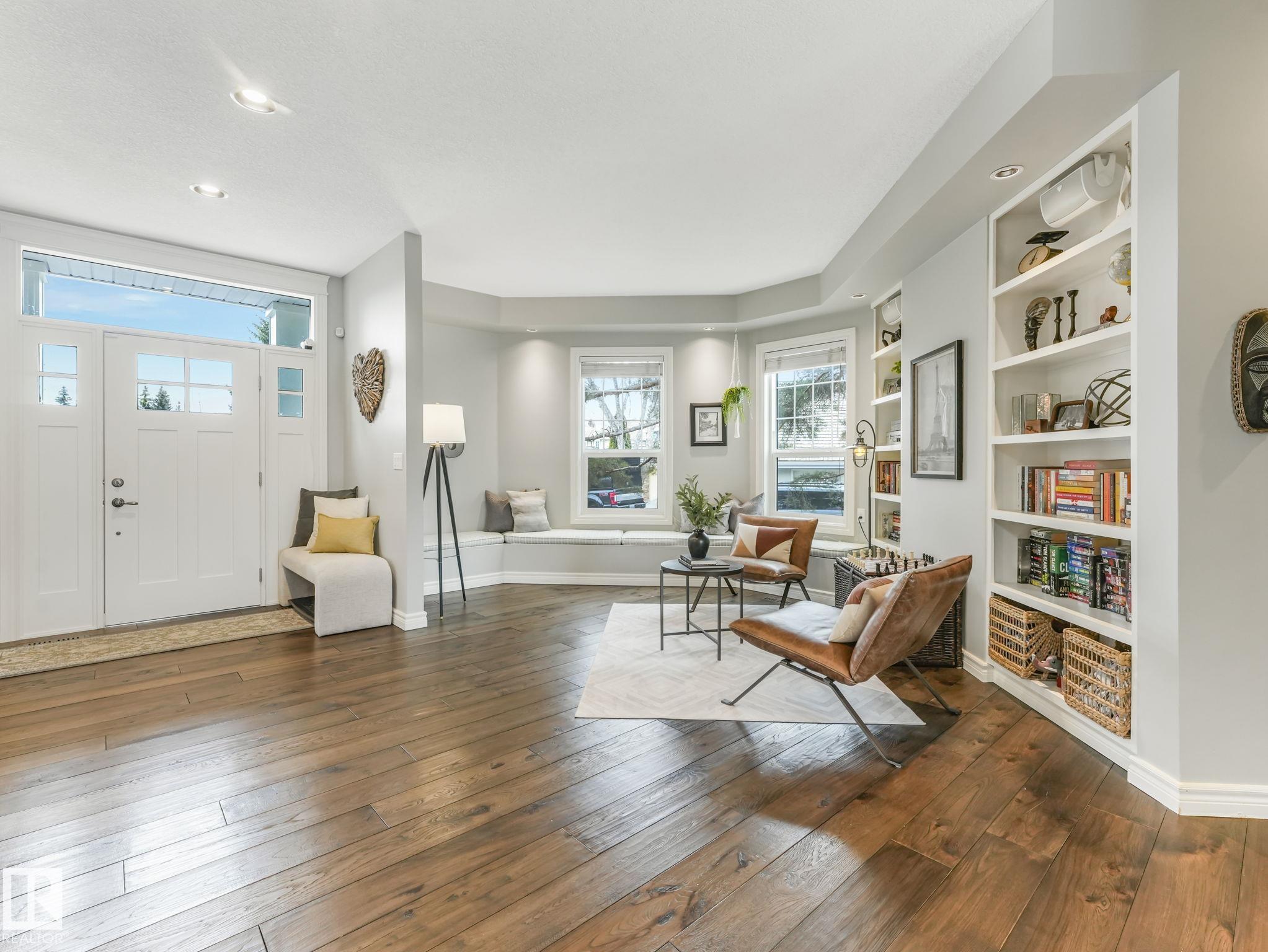 Custom-built Executive home on a 15,289 sq ft pie-shaped cul-de-sac lot, adjacent to the Wedgewood Ravine in one of Edmonton's most prestigious neighbourhoods. This 3,821 sq ft above-grade masterpiece offers 6 bedrooms, 3 full and 2 half baths & a fully developed 2,017 sq ft basement — with 5800 sq ft of total living space. The rare main-floor primary suite boasts a spa ensuite with jetted soaker tub & multi-jet shower (2014). Soaring vaulted ceilings, 7 skylights, built-in speakers, intercom & 2 gas firep...