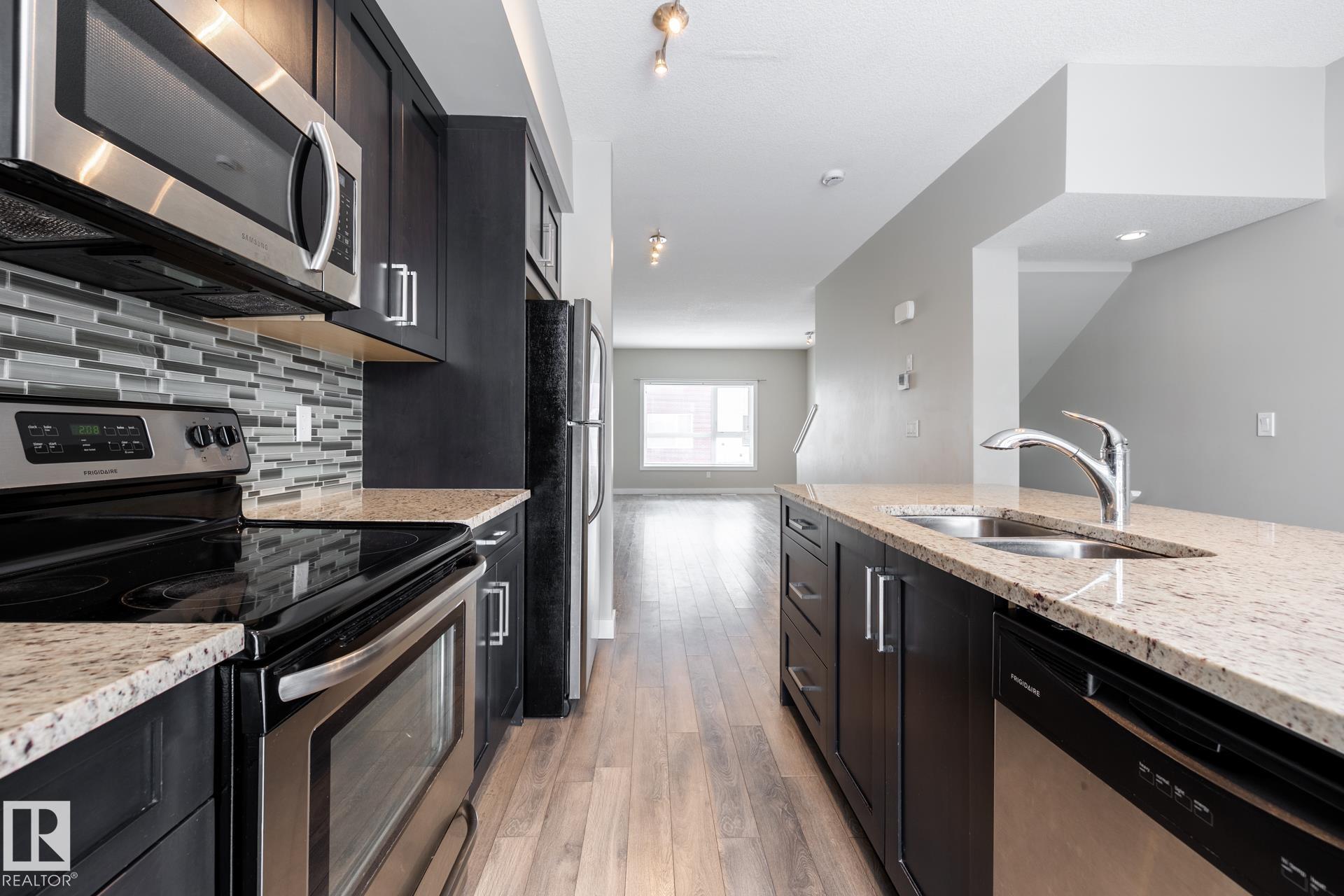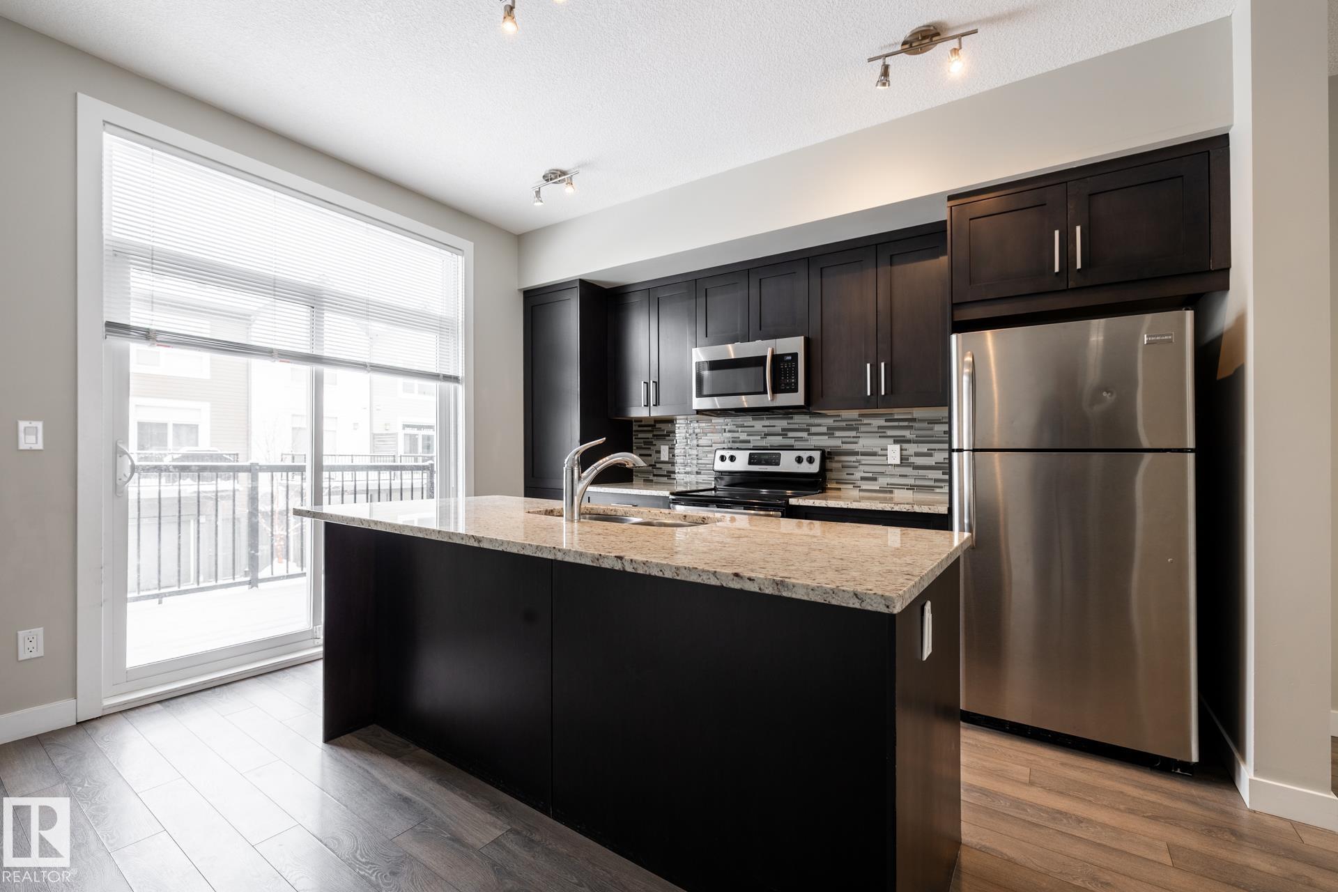 Excellent opportunity for this value priced and nicely upgraded unique 3 storey townhome perfectly located in central Edmonton's much desirable and award-winning family neighborhood of GRIESBACH. This spacious 2 bedrooms + den, 2.5 baths features an impressive, bright & spacious open floor plan with 9 ft. ceilings and oversized windows, and over 1330 sq.ft. gorgeous living space year-round. Trendy upgraded open kitchen with Island, granite counters, stainless steel appliances and open to the spacious Living...