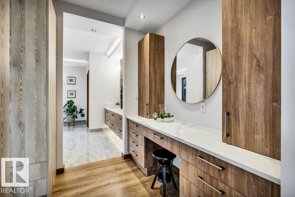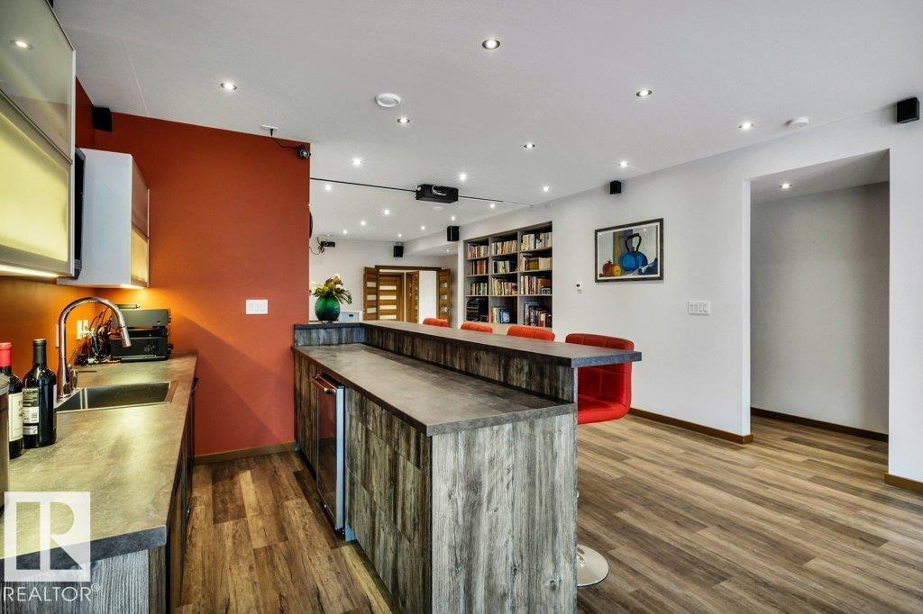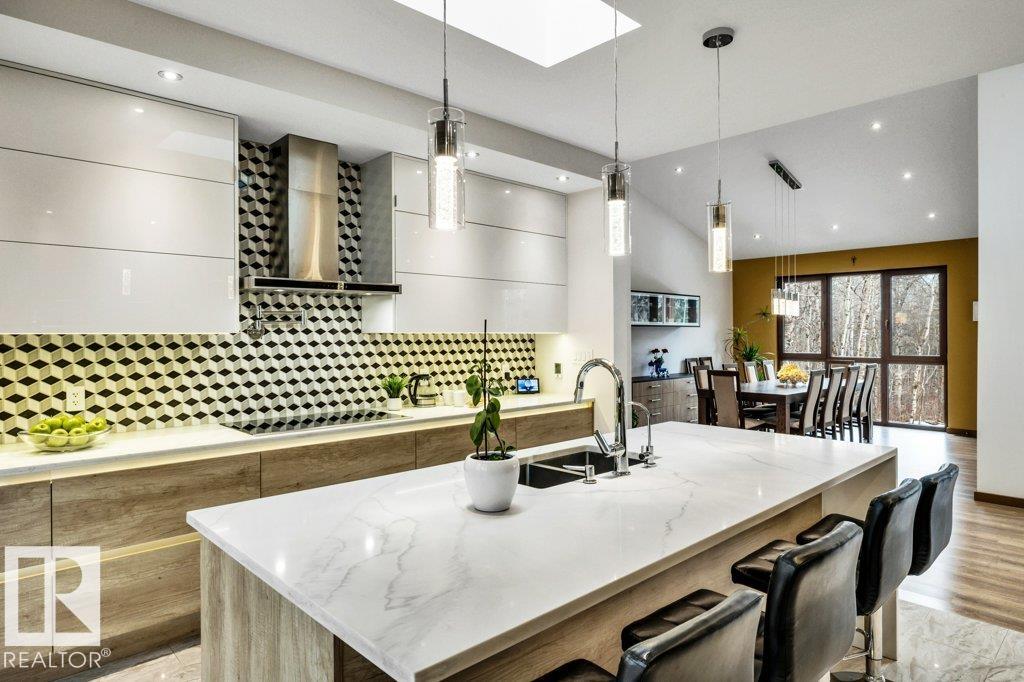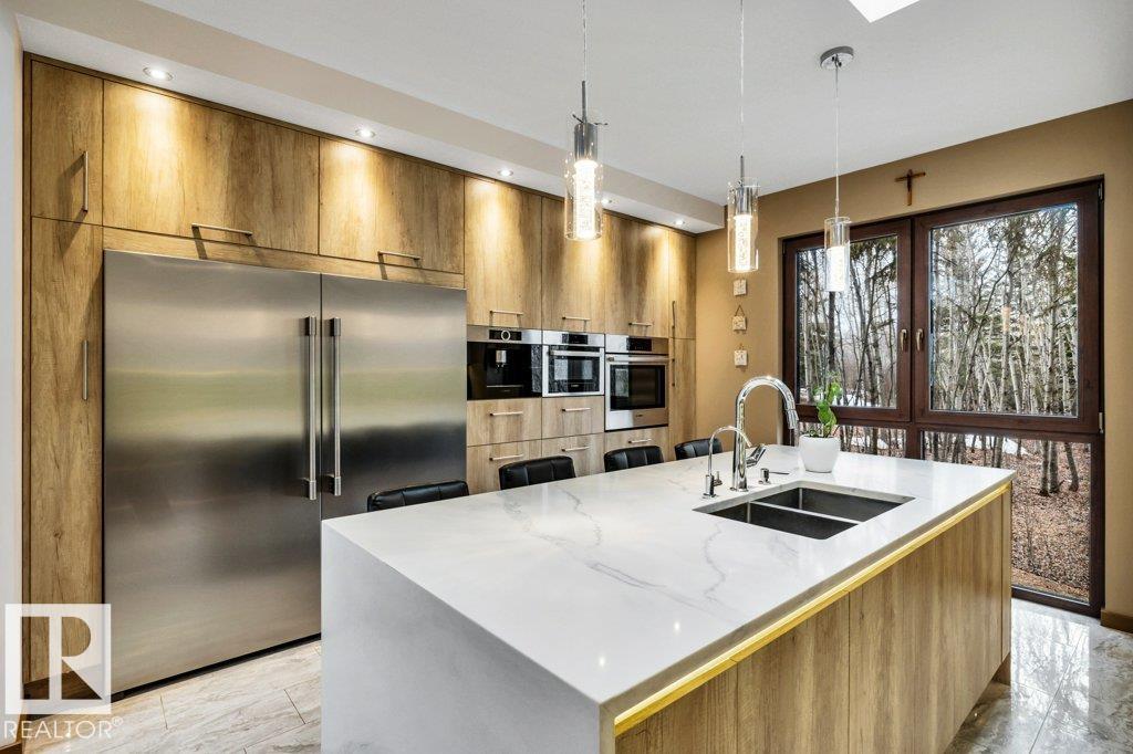 Nestled in a private, treed setting, this European-inspired walkout bungalow blends refined craftsmanship with everyday comfort. A vaulted living room with a wood-burning fireplace creates a warm focal point and opens to a large deck, seamlessly extending your living space outdoors. The chef’s kitchen impresses with built-ins, a waterfall island, and an expansive window framing nature. Thoughtful details shine throughout, from premium cabinetry to subtle floor lighting. The main level offers a dedicated off...