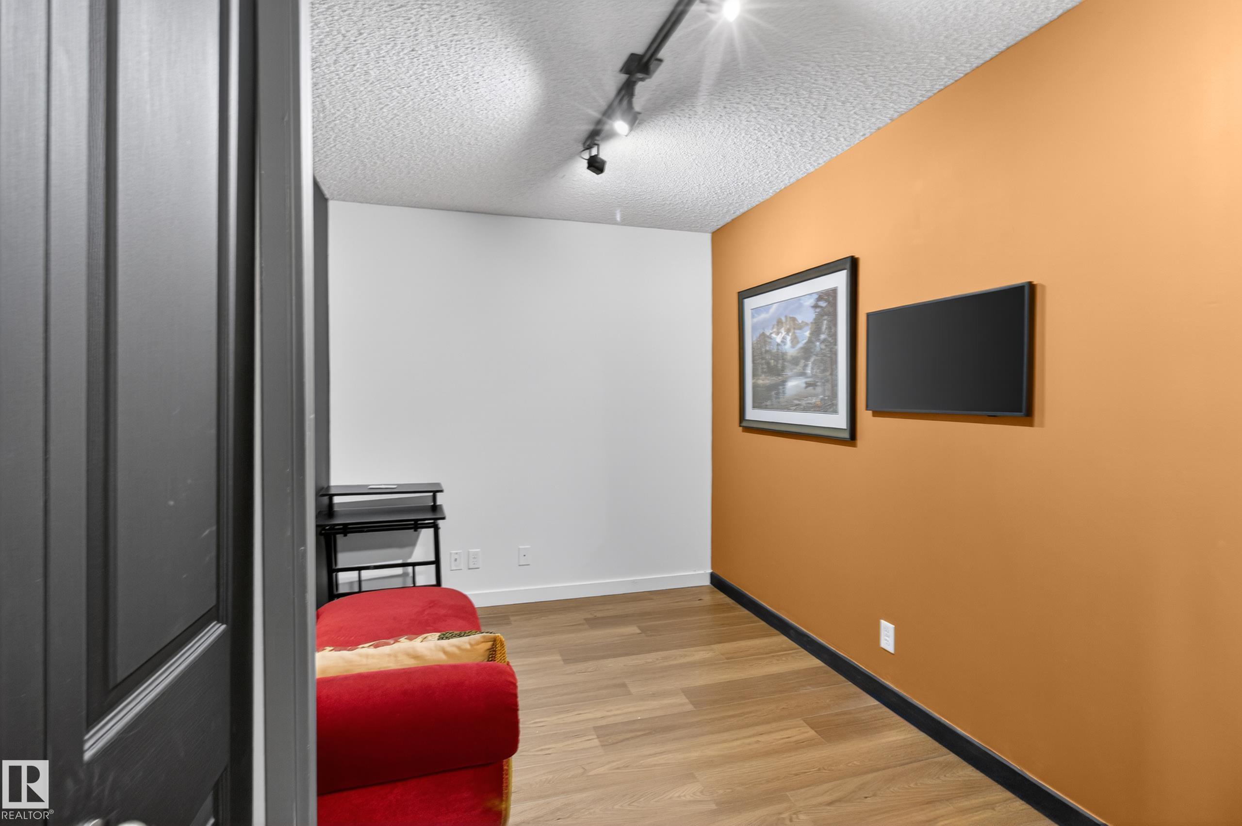 Contemporary 2 bedroom plus den suite on third floor of popular Rutherford Landing. 2 full baths including a full 4 piece ensuite. Open great room plan with bedrooms and baths on either side of suite for privacy! Peninsula kitchen with granite counter tops and stainless steel appliances. Clean hard surface flooring including ceramic tile and newer vinyl plank flooring. Newer track lighting! Recent paint utilizing modern alternative colors. West facing balcony for evening sun. Heated underground parking sta...