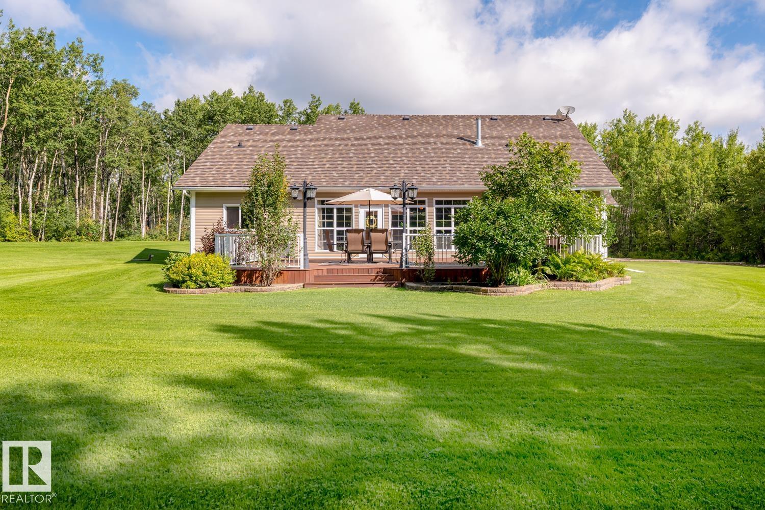 Introducing a stunning custom-built bungalow nestled in the serene countryside! This picturesque home offers the perfect blend of luxury and tranquility. Boasting a spacious layout, 3 bedroom main floor and possible 2 more down - the residence features a triple heated garage and an additional heated shop, providing ample space for all your hobbies and projects. The expansive golf course-like lawns are adorned with underground sprinklers, lamp posts, gas fire bowl on deck, and raised fire pit area, ensurin...