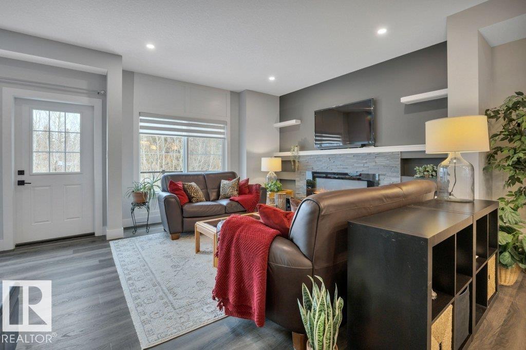 SERENE VIEWS overlooking TREED GREENSPACE in Edgemont. LUX townhouse with DOUBLE ATTACHED GARAGE, Patio & Balcony. Upgrades galore in this 3 level, 1700 ft2 MODERN EXECUTIVE home with open design. As you enter ground level you have a Convenient OFFICE(flex room) & storage area near access to garage. UPGRADES include: IRON RAILING, QUARTZ countertops, SS Appliances, 5' LINEAR FIREPLACE featuring STONE mantel, LUX VINYL PLANK flooring,large main floor LAUNDRY room with SOUTH window,9' CEILINGS, 8' Interior D...